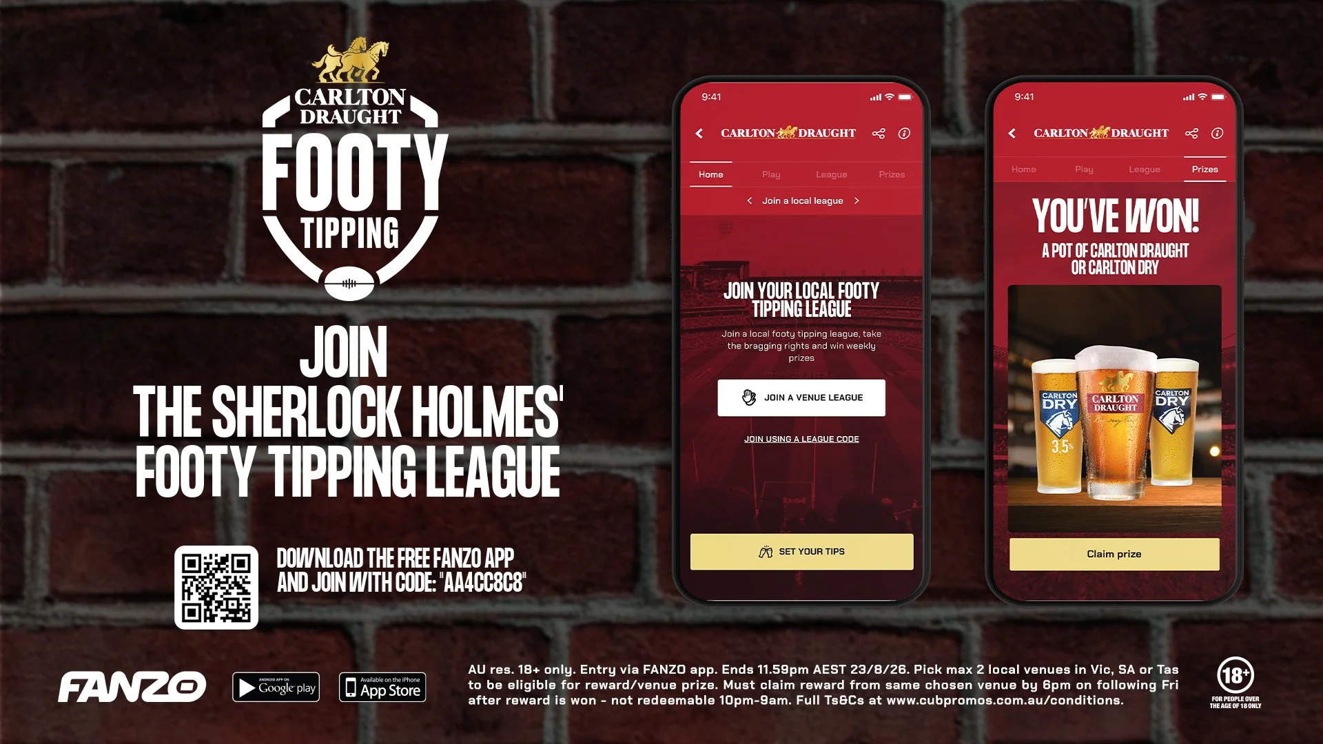 Then join The Sherlock Holmes Footy Tipping via FANZO app